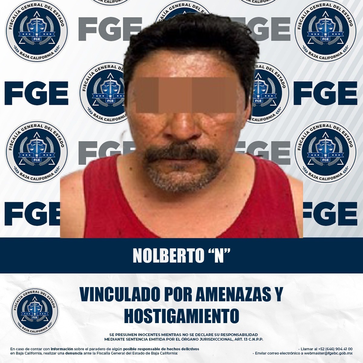 MEXICALI, BAJA CALIFORNIA. - La Fiscalía Regional de Mexicali, a través de la Unidad de Investigación de Delitos Contra las Personas y su Libertad, obtuvo la vinculación a proceso de un individuo por su presunta participación en los delitos de amenazas y hostigamiento.