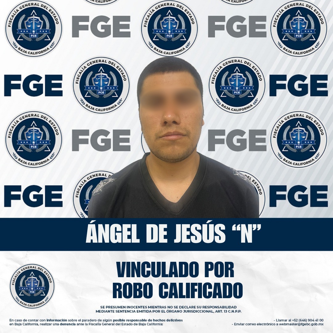 SAN QUINTÍN, BAJA CALIFORNIA. - La Fiscalía Regional de San Quintín obtuvo la vinculación a proceso de Ángel de Jesús “N” por el delito de robo calificado, tras ser aprehendido por su presunta participación en el robo a una escuela indígena ubicada en la delegación Vicente Guerrero.