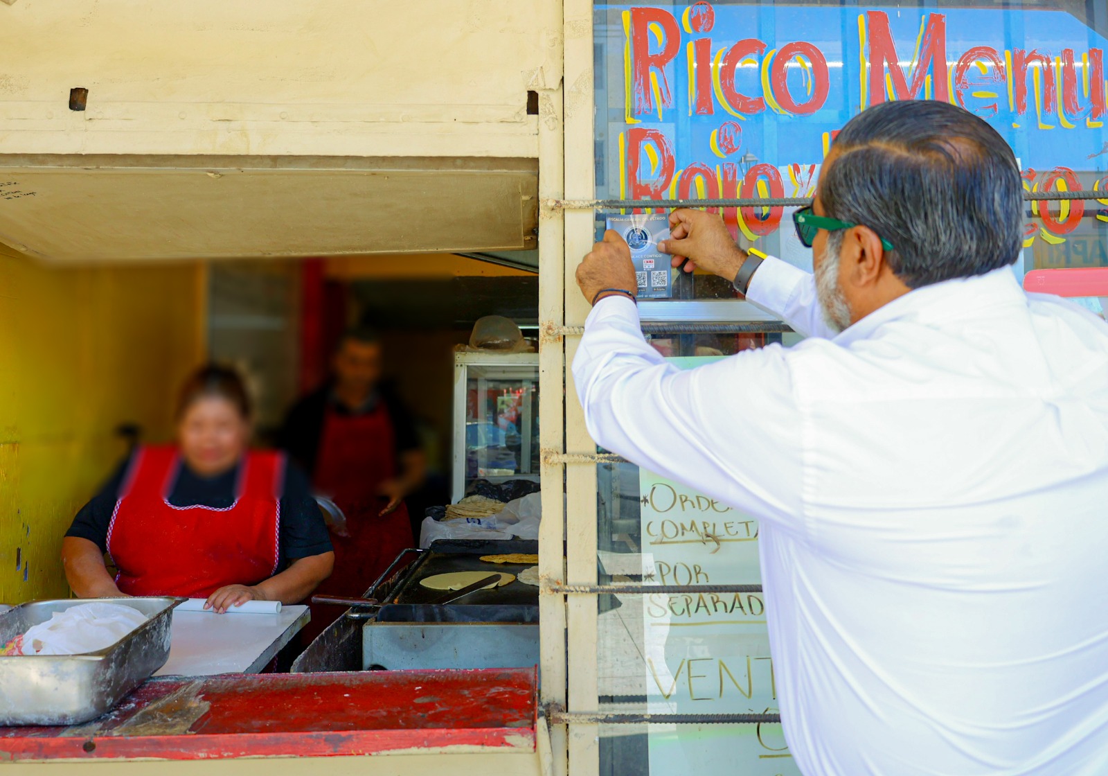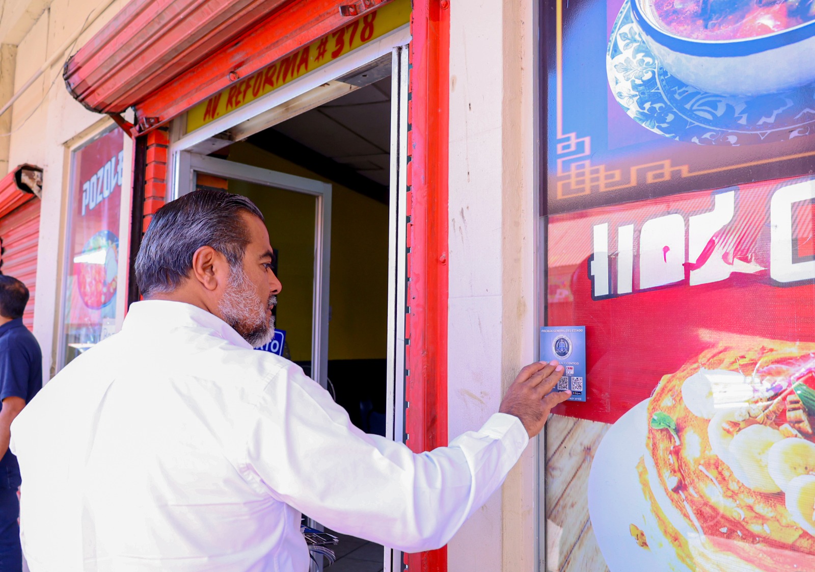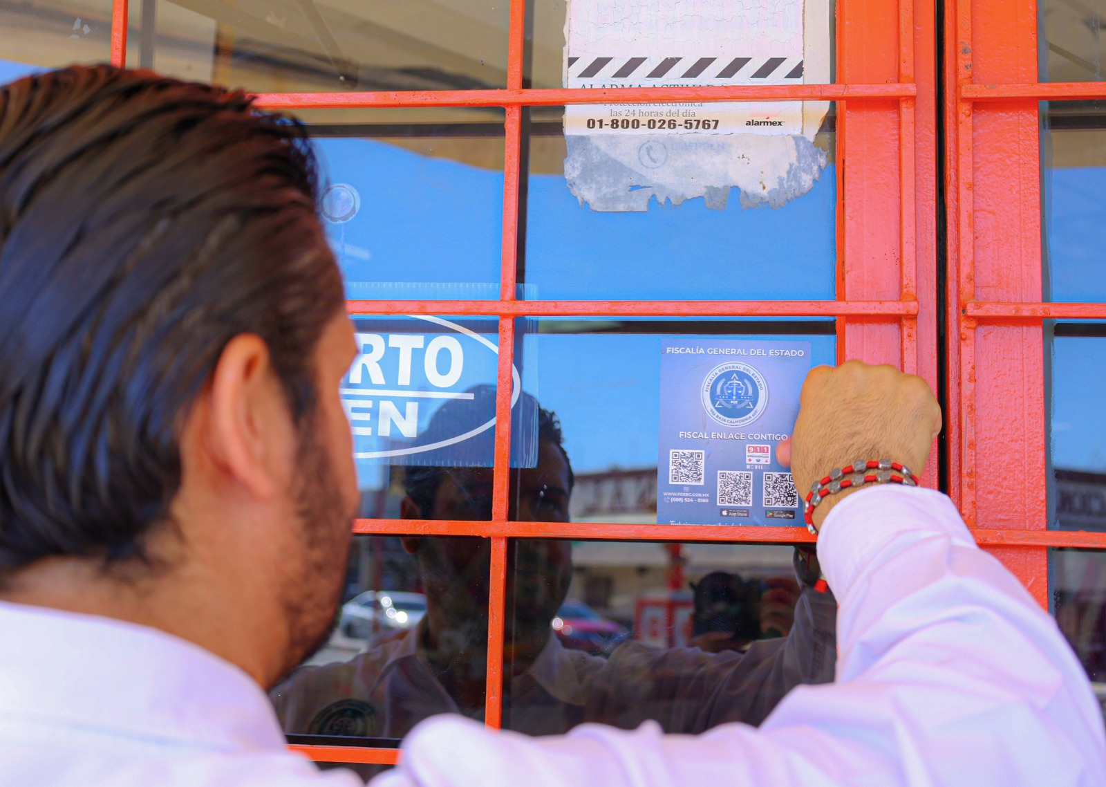 En seguimiento a esta instrucción, el Fiscal Regional de Mexicali, Mtro. Efrén Ruíz Romo, el Fiscal enlace, Lic. José Pedro Leyva, en compañía de Rubén Hernández Chen, Delegado Municipal del Centro Histórico y José Antonio Sánchez, Comerciante del mismo Centro llevaron a cabo un operativo informativo en la zona centro de la Ciudad, donde colocaron calcomanías con los números de emergencia 9-1-1 y 089 en establecimientos comerciales y puntos estratégicos.