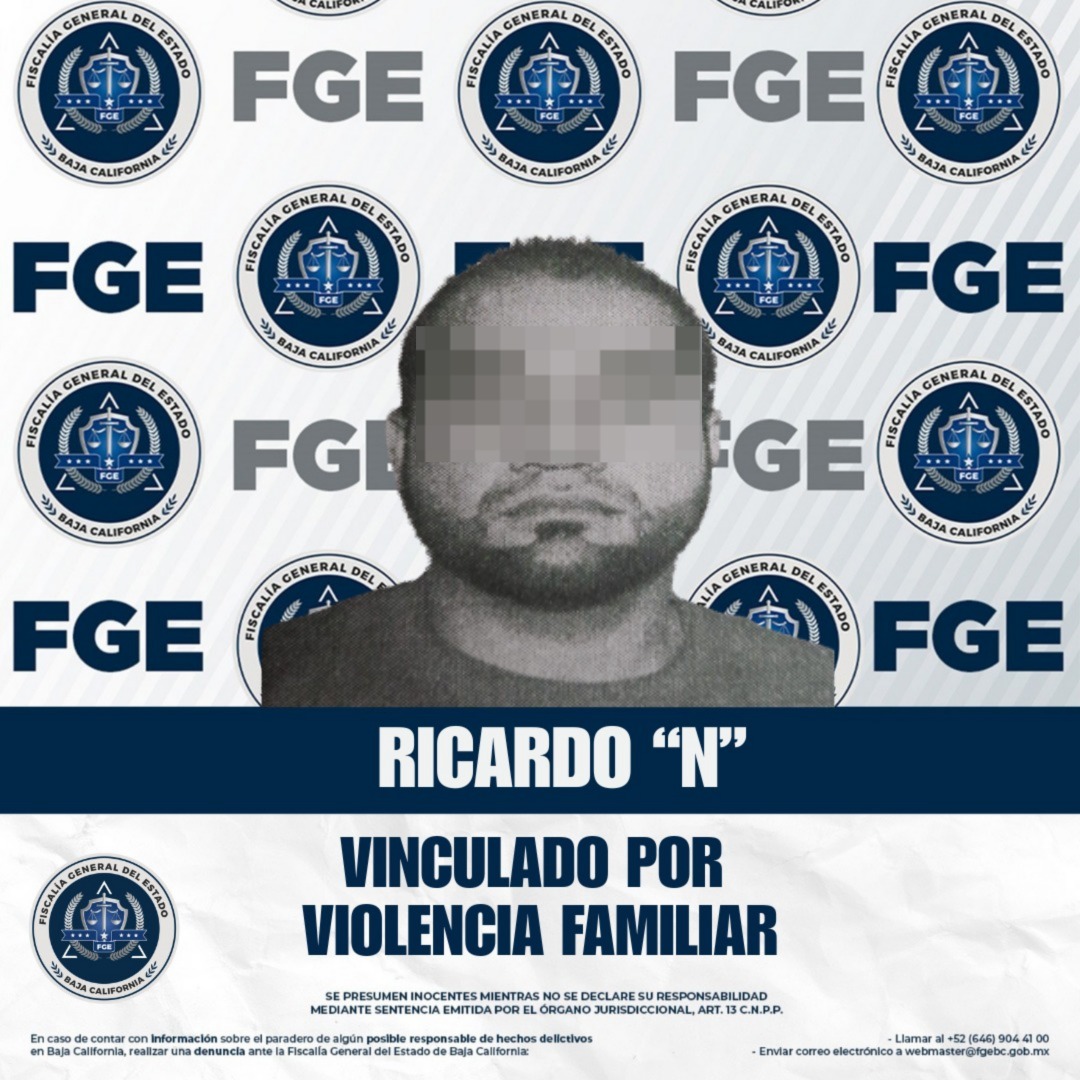 ENSENADA, BAJA CALIFORNIA. - La Fiscalía General del Estado, a través de la Fiscalía Especializada en Delitos contra la Mujer por Razón de Género, obtuvo la vinculación a proceso de Ricardo “N”, por su presunta responsabilidad en el delito de violencia familiar.