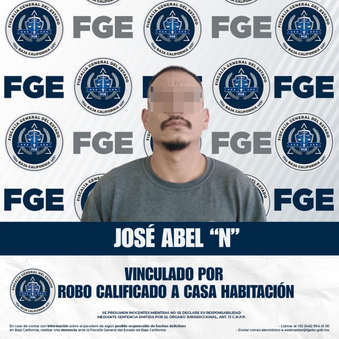 ENSENADA, BAJA CALIFORNIA. - La Fiscalía Regional de Ensenada logró que un juez de control vinculó a proceso a José Abel “N”, por su presunta participación en un robo calificado a casa habitación, ocurrido el pasado 24 de mayo en el poblado de Chapultepec.