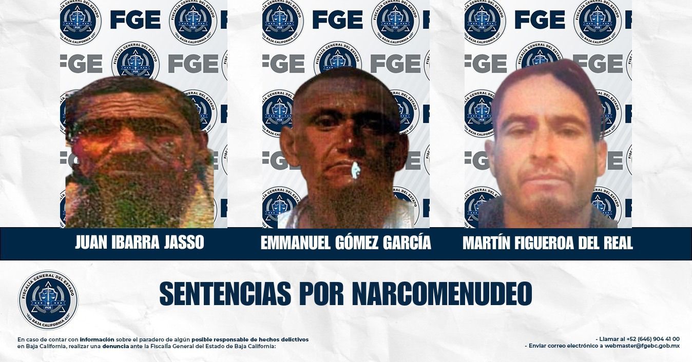 PLAYAS DE ROSARITO, BAJA CALIFORNIA. - La Fiscalía General del Estado, a través de la Fiscalía Especializada en Narcomenudeo, logró obtener un fallo condenatorio para tres individuos acusados de delitos contra la salud, específicamente en la modalidad de posesión de metanfetamina y marihuana.
