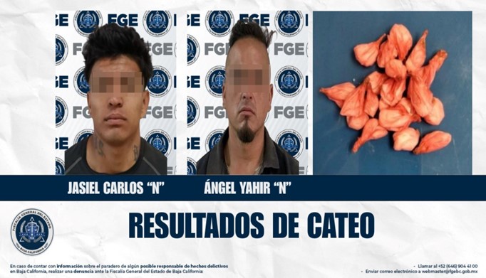 SAN QUINTÍN, BAJA CALIFORNIA. - Como resultado de una diligencia judicial autorizada por un juez, la Fiscalía General del Estado, a través de la Fiscalía Especializada en Combate al Narcomenudeo, llevó a cabo un cateo en un domicilio del municipio de San Quintín, logrando la detención de dos personas y el aseguramiento de posible droga.