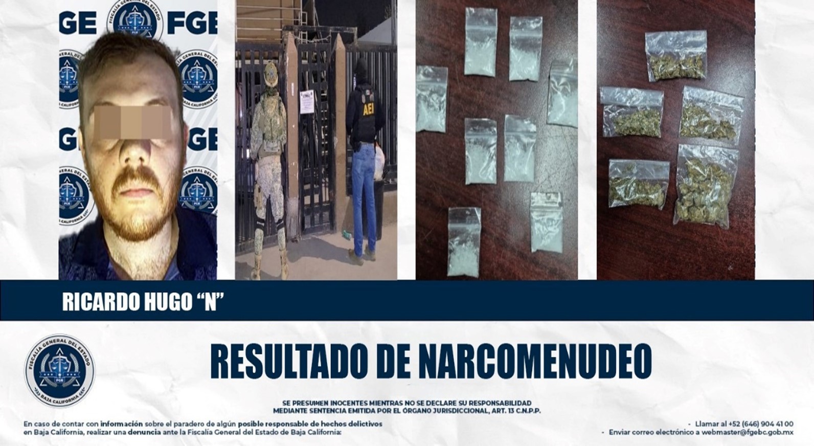 Durante el operativo, que dio seguimiento a una denuncia anónima sobre la venta de narcóticos en una vivienda ubicada en la avenida Niño Héroes de la mencionada colonia —la cual, aparentemente, era frecuentada por personas con adicciones—, fue asegurado Ricardo Hugo “N”.