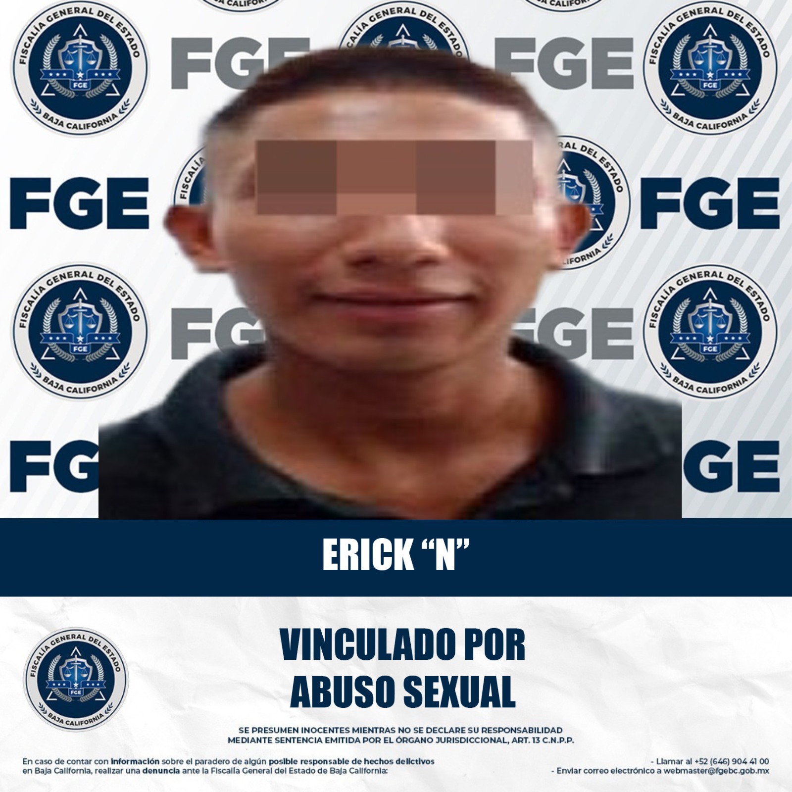 MEXICALI, BAJA CALIFORNIA. - La Fiscalía Regional de Mexicali logró, con base en la presentación de una carpeta de investigación sustentada con elementos sólidos, la vinculación a proceso de un hombre por su posible relación en el delito de abuso sexual.
