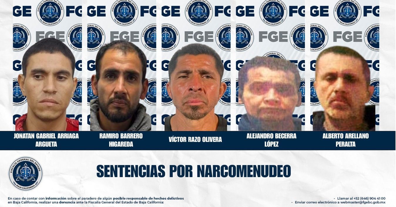 TIJUANA, BAJA CALIFORNIA. - La Fiscalía General del Estado, a través de la Fiscalía Especializada en Narcomenudeo, obtuvo sentencias condenatorias contra cinco personas por delitos contra la salud, en la modalidad de posesión de metanfetamina y marihuana.