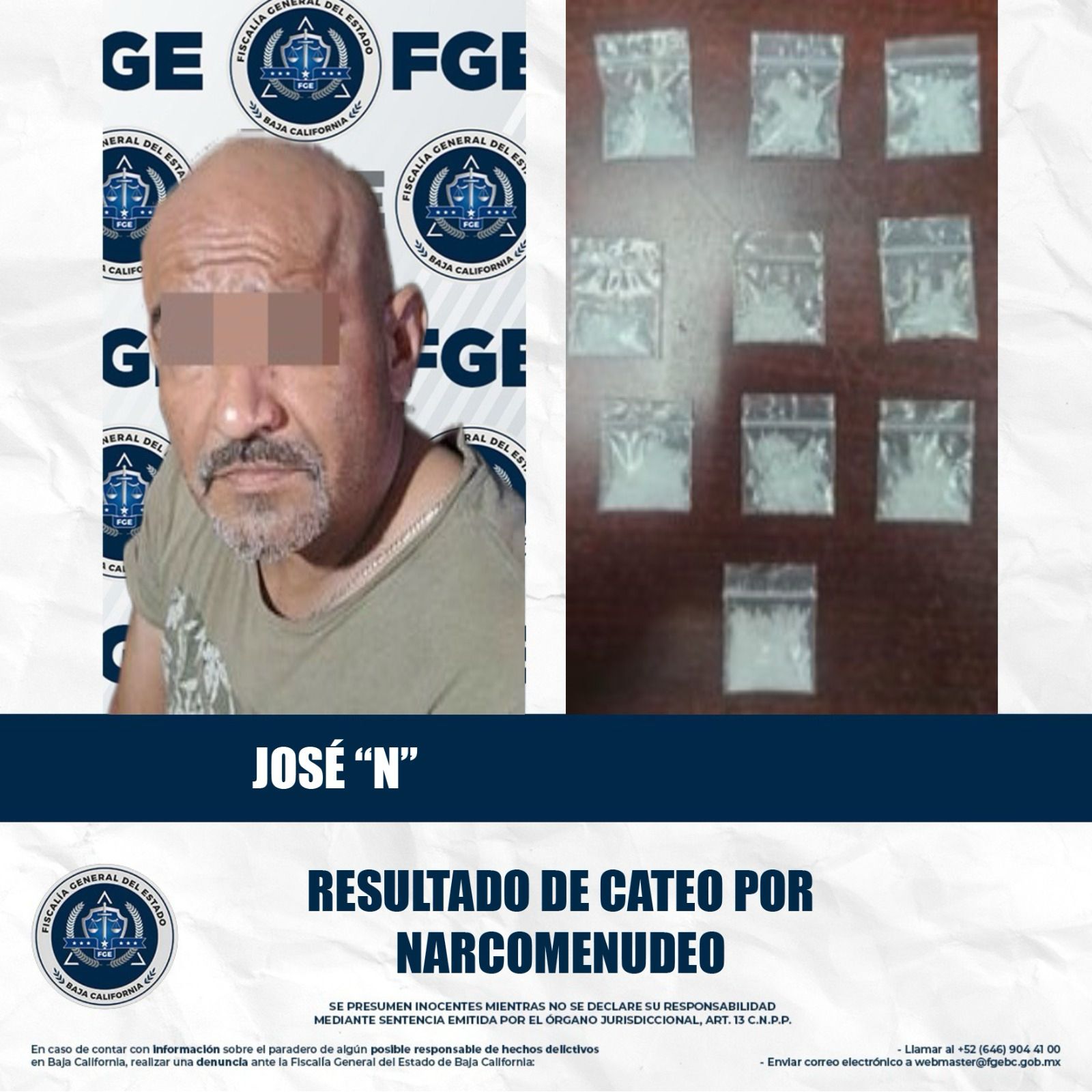 MEXICALI, BAJA CALIFORNIA. - Como resultado del seguimiento a una denuncia anónima en donde se informaba sobre la ubicación de un punto de venta de droga, agentes adscritos a la Fiscalía Especializada en Narcomenudeo en Coordinación elementos de la Secretaría de la Defensa Nacional, detuvieron durante un cateo a un hombre en posesión de droga.