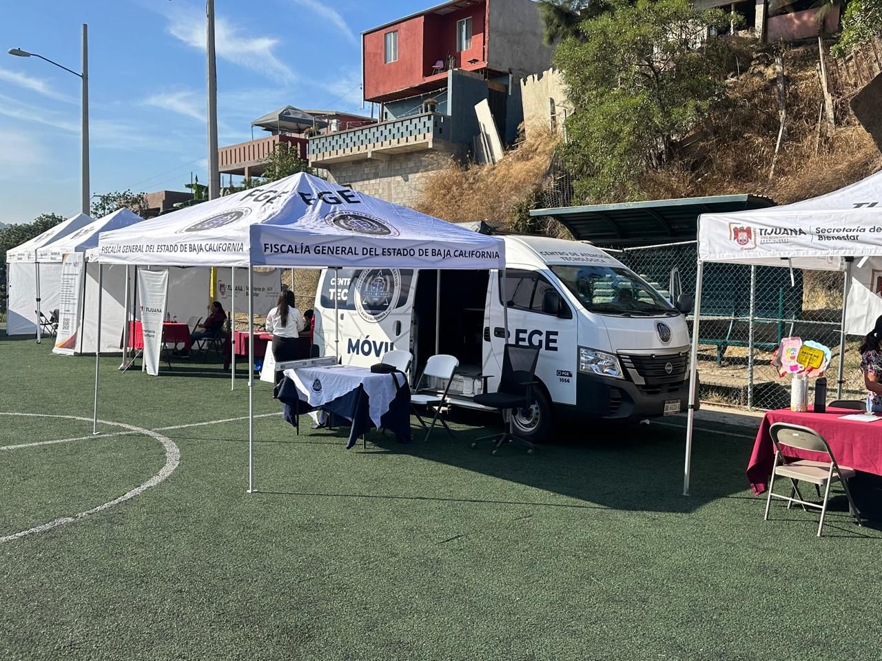 Una unidad móvil fue instalada en el Centro Comunitario 2, en la colonia Las Cumbres, en colaboración con la Dirección de Desarrollo Social Municipal del Ayuntamiento de Tijuana, donde, por medio de pláticas, gestión de trámites y capacitaciones, se busca fortalecer el vínculo entre la Fiscalía y la comunidad.