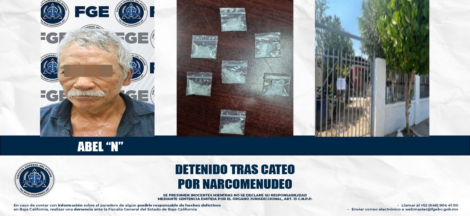 MEXICALI, BAJA CALIFORNIA. - Elementos de la Fiscalía General del Estado (FGE) realizaron un cateo a un domicilio señalado como punto de venta de droga, logrando la captura de un individuo, así como el decomiso de diversos envoltorios con enervantes.