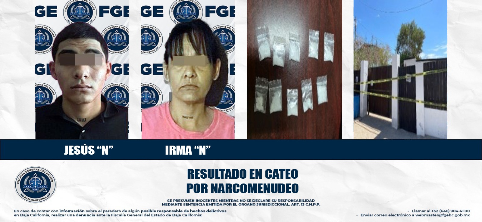 En el lugar fueron detenidos Jesús “N” e Irma “N”, quienes, al igual que la droga asegurada, fueron puestos a disposición de la Fiscalía Especializada en Narcomenudeo para la integración de la carpeta de investigación correspondiente. El domicilio quedó asegurado.