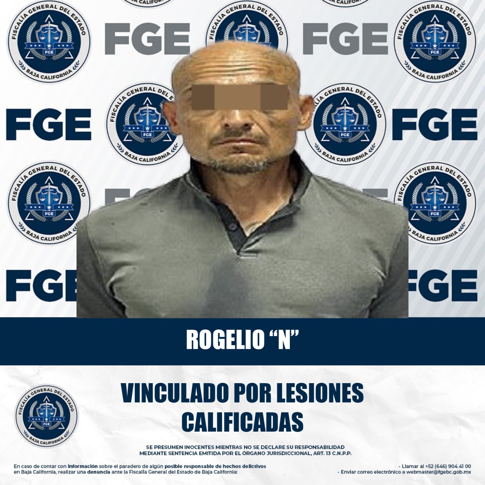 MEXICALI, BAJA CALIFORNIA. - Con base en el trabajo realizado por la Fiscalía Regional de Mexicali, a través de la Unidad de Investigación de Delitos Contra las Personas y su Libertad, se logró el auto de vinculación a proceso de un acusado por el delito de lesiones calificadas.