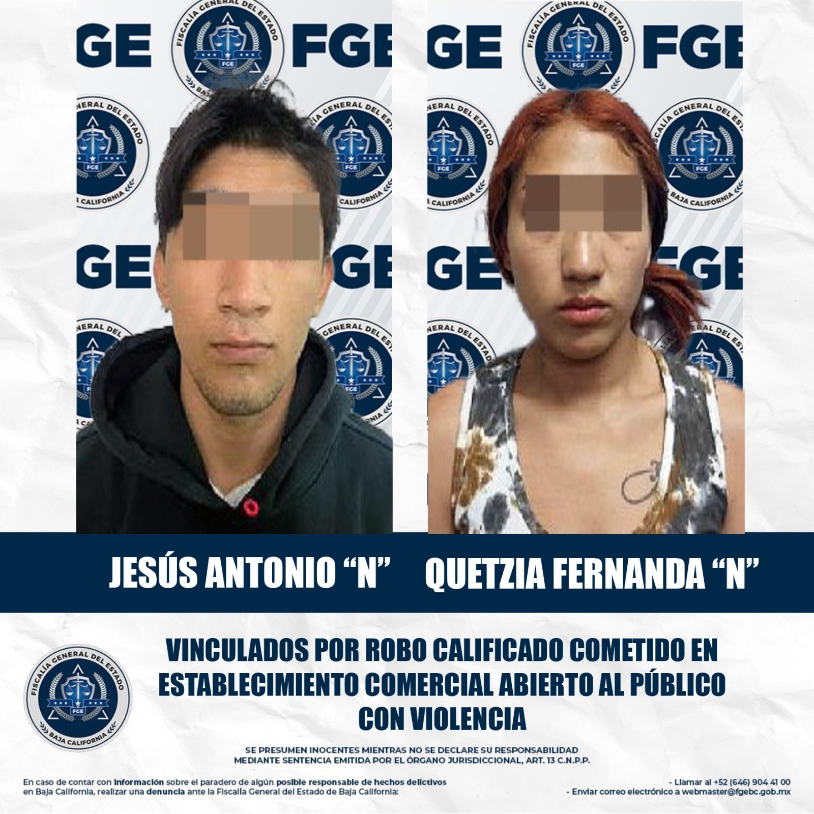 MEXICALI, BAJA CALIFORNIA. - La Fiscalía Regional de Mexicali, a través de la Unidad de Investigación de Delitos de Robo Oriente y Robo Poniente, obtuvo la vinculación a proceso de dos imputados por el delito de robo calificado cometido en establecimiento comercial abierto al público con violencia.