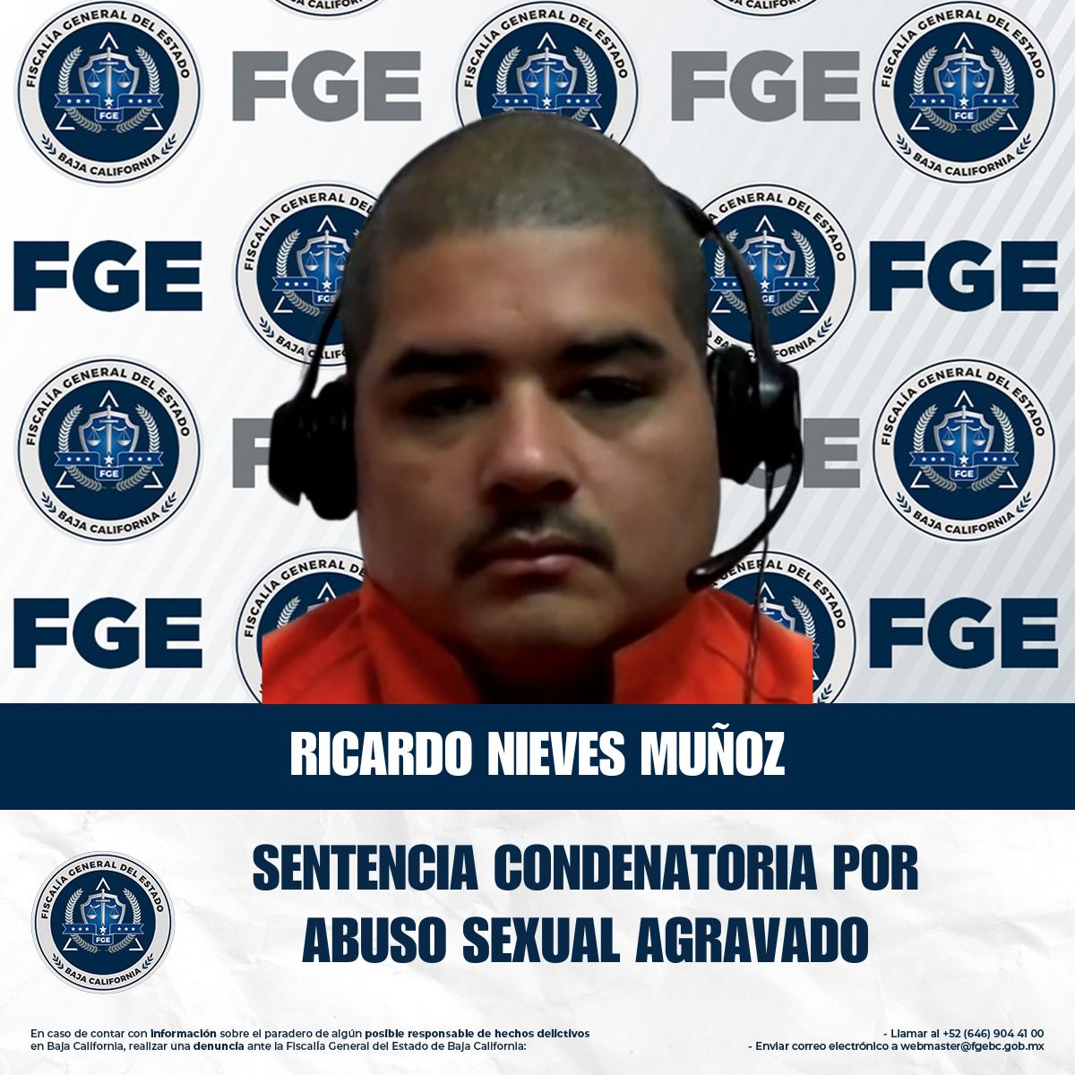 El 15 de agosto de 2025, mediante procedimiento abreviado, un juez dictó sentencia de 3 años de prisión a Ricardo Nieves Muñoz, además del pago de una multa y la reparación del daño. Con esta resolución, la Fiscalía General del Estado reafirma su compromiso con la procuración de justicia y la protección de los derechos de las mujeres, niñas y adolescentes en Baja California.