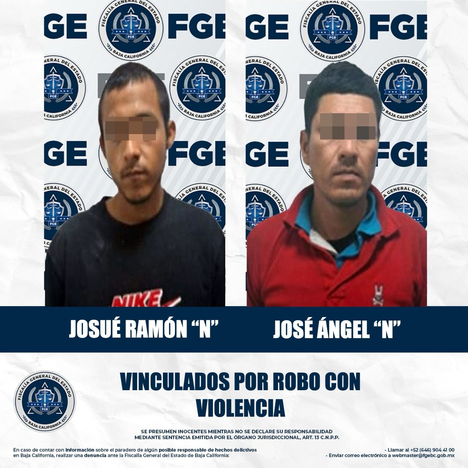 MEXICALI, BAJA CALIFORNIA. - La Fiscalía Regional de Mexicali, logró la vinculación a proceso de dos hombres relacionados en el robo con violencia a un establecimiento comercial de la colonia Santa Teresa. Ambos fueron vinculados a proceso mediante los datos de prueba presentados.