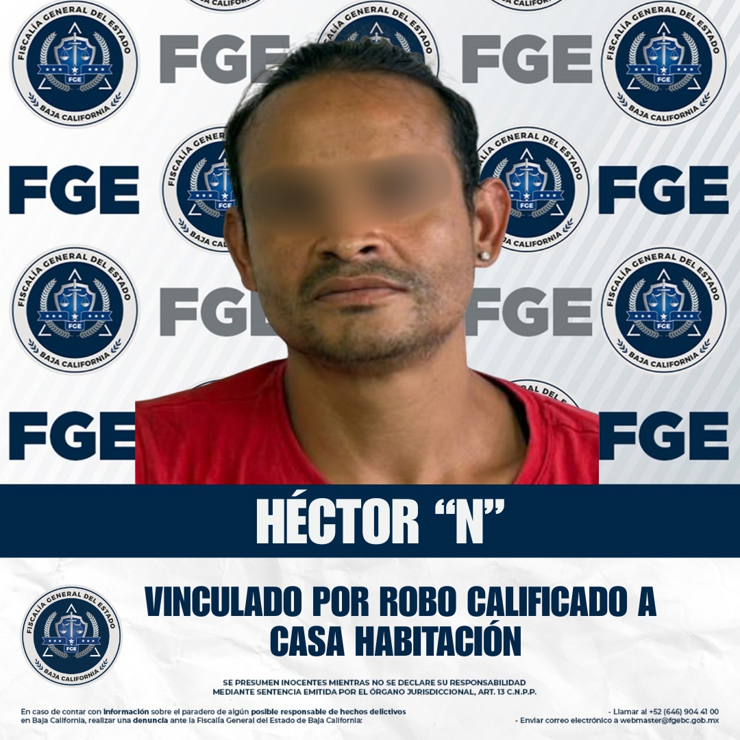 ENSENADA, BAJA CALIFORNIA. - La Fiscalía Regional de Ensenada, en coordinación con la Unidad de Investigación de Robos, logró la vinculación a proceso de un hombre por el delito de Robo Calificado a Casa Habitación.