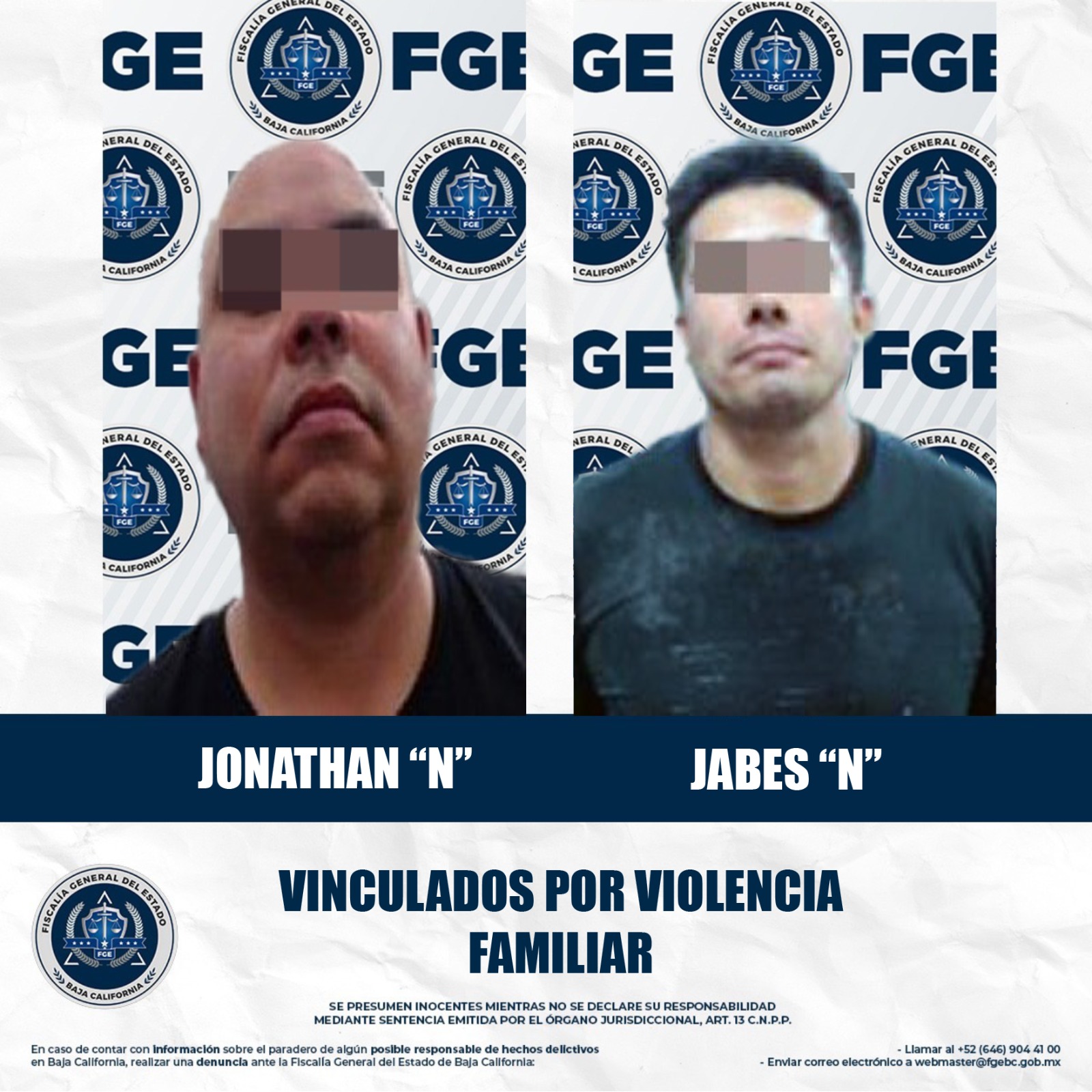 MEXICALI, BAJA CALIFORNIA. - La Fiscalía Regional de Mexicali, a través de la Unidad de Investigación con Detenidos Poniente, obtuvo la vinculación a proceso de dos hombres acusados por violencia familiar, como resultado de las pruebas y argumentos presentados ante el Juez de Control.