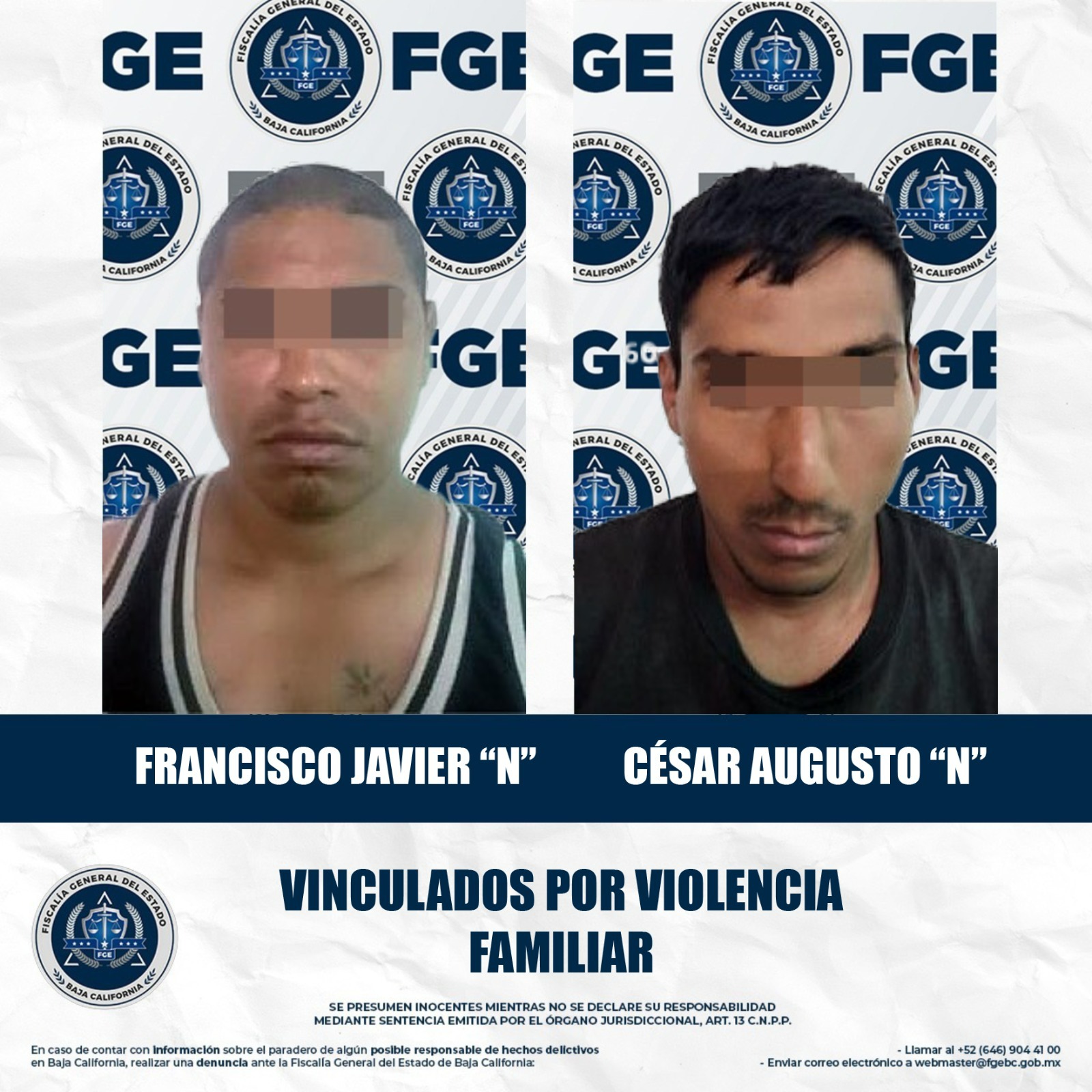 MEXICALI, BAJA CALIFORNIA. - La Fiscalía Regional de Mexicali, a través de la Unidad de Investigación de Delitos con Detenidos Oriente, obtuvo la vinculación a proceso de dos hombres por el delito de violencia familiar, en hechos distintos registrados en esta ciudad.