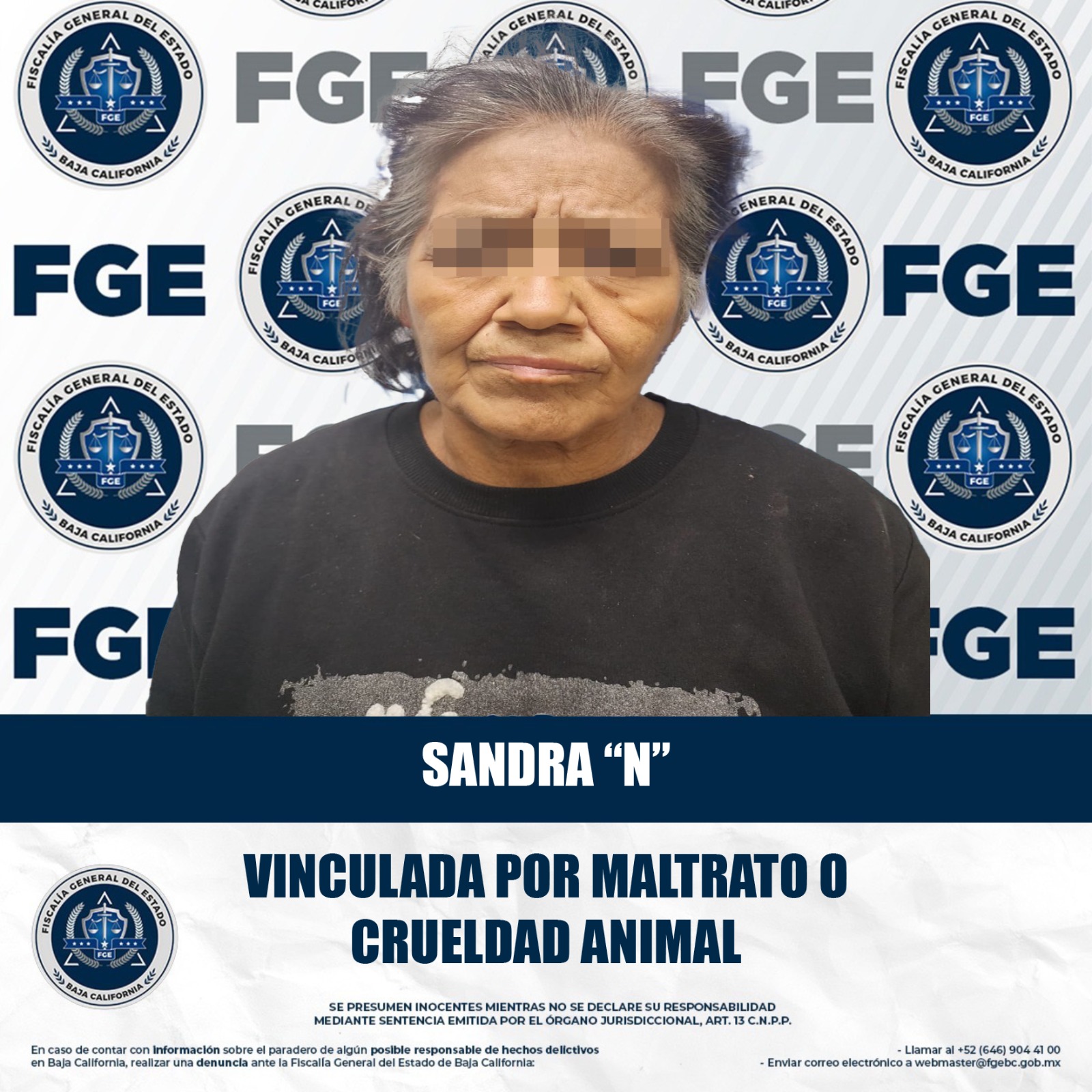 MEXICALI, BAJA CALIFORNIA. - La Fiscalía Regional de Mexicali, en coordinación con la Fiscalía Especializada en Delitos Ambientales y Contra los Animales, obtuvo la vinculación de Sandra “N” imputada por el delito de maltrato o crueldad animal, incidente registrado en la colonia Pueblo Nuevo.