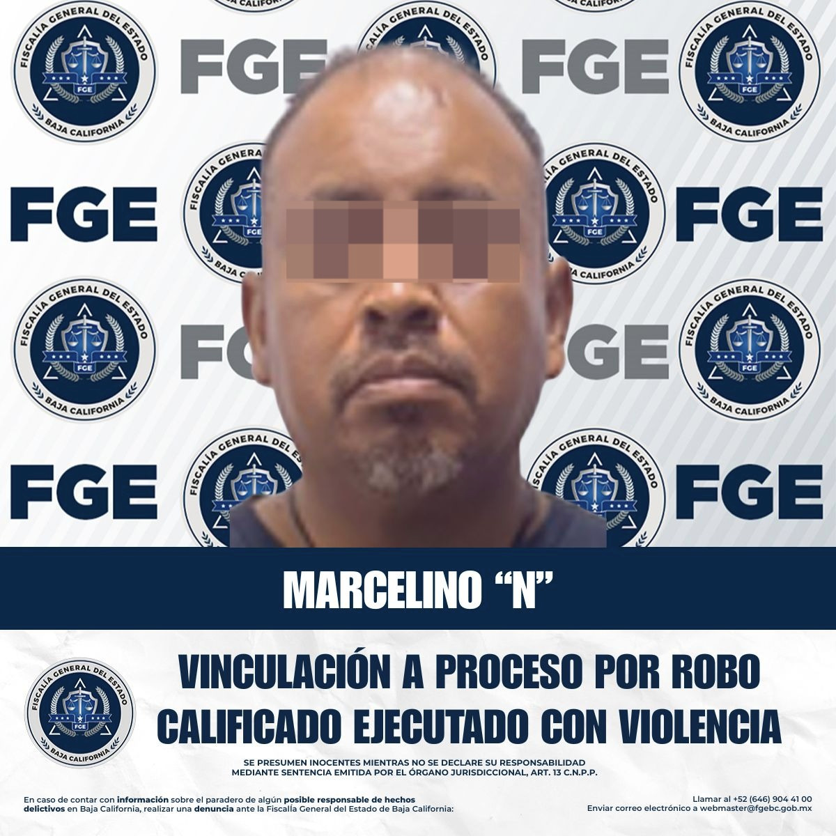 TIJUANA, BAJA CALIFORNIA. - La Unidad de Investigación con Detenido, adscrita a la Fiscalía Regional de Tijuana, obtuvo la vinculación a proceso de Marcelino “N”, por el delito de robo calificado ejecutado con violencia.