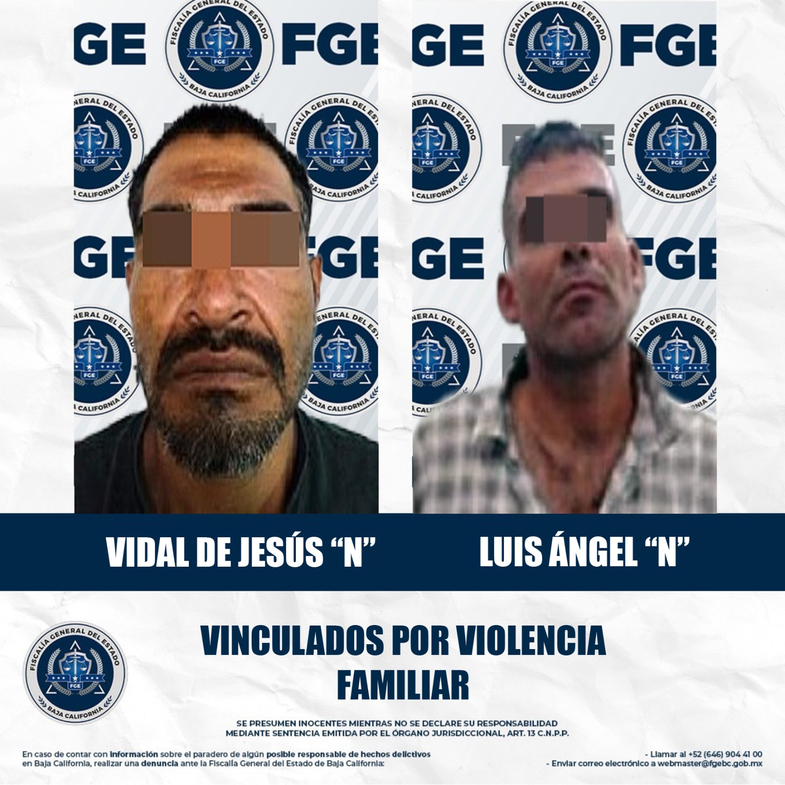MEXICALI, BAJA CALIFORNIA. - Dos hombres acusados de agredir a familiares, fueron vinculados con base en los elementos de prueba presentados por la Fiscalía Regional de Mexicali, a través de la Unidad de Investigación con Detenidos Oriente y Detenidos Poniente.