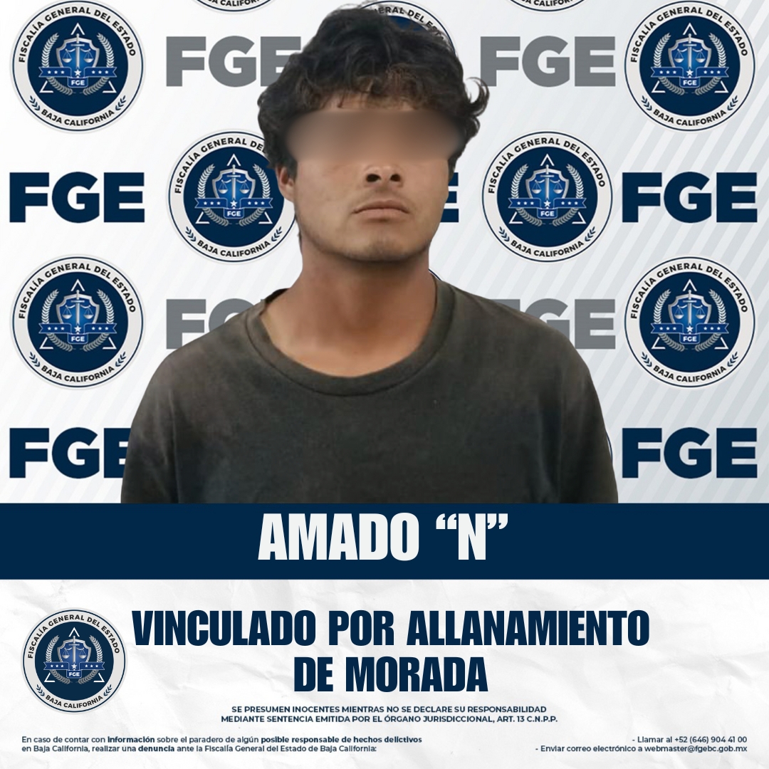 ENSENADA, BAJA CALIFORNIA. - La Fiscalía Regional de Ensenada, a través de la Unidad de Tramitación Masiva de Causas, obtuvo la vinculación a proceso de Amado “N” por el delito de allanamiento de morada.