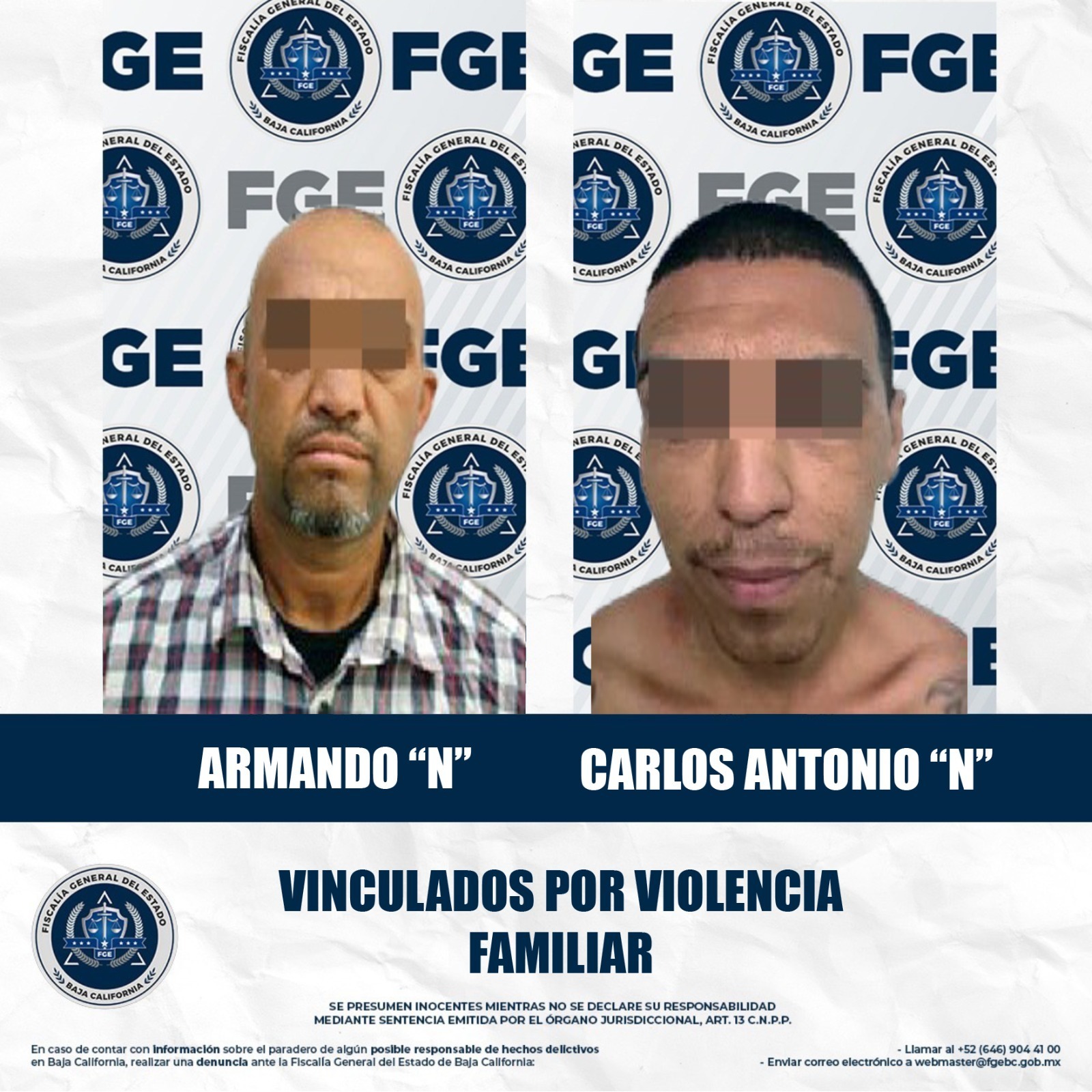 MEXICALI, BAJA CALIFORNIA. - La Fiscalía Regional de Mexicali, a través de la Unidad de Investigación de Delitos con Detenidos Poniente y Detenidos Oriente, obtuvo la vinculación a proceso de dos hombres imputados por el delito de violencia familiar.