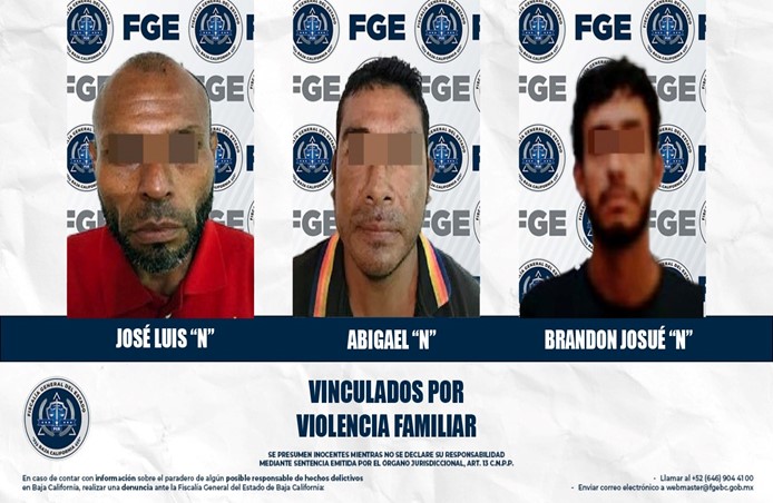 MEXICALI, BAJA CALIFORNIA. - La Fiscalía Regional de Mexicali, logró con base al trabajo realizado por las Unidades de Investigación con Detenidos Oriente y Detenidos Poniente, la vinculación a proceso de tres hombres acusados de agredir a sus familiares.