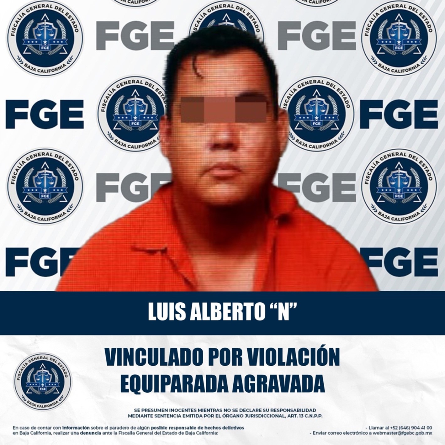 MEXICALI, BAJA CALIFORNIA. - La Fiscalía General del Estado (FGE), a través de la Fiscalía Especializada en Delitos Contra Mujeres por Razón de Género, presentó los elementos de prueba y argumentos que permitieron el inicio del proceso penal en contra de un hombre acusado de violación equiparada agravada.