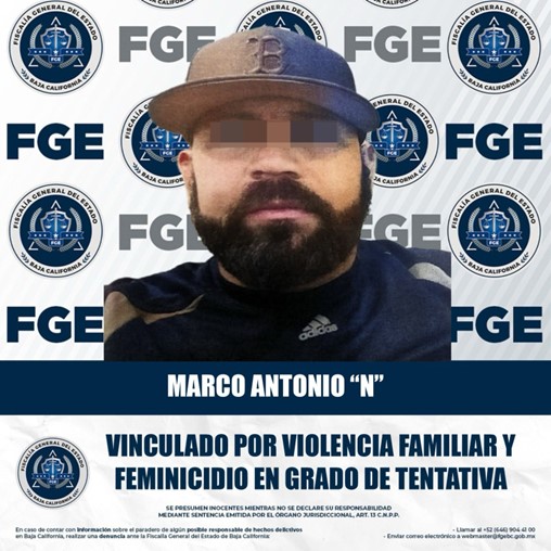 MEXICALI, BAJA CALIFORNIA. - La Fiscalía General del Estado, a través de la Fiscalía Especializada en Delitos Contra Mujeres por Razón de Género, obtuvo la vinculación a proceso de Marco Antonio “N” por su probable responsabilidad en los delitos de violencia familiar y feminicidio en grado de tentativa, derivados de hechos ocurridos el pasado 12 de abril en la colonia El Ciprés.