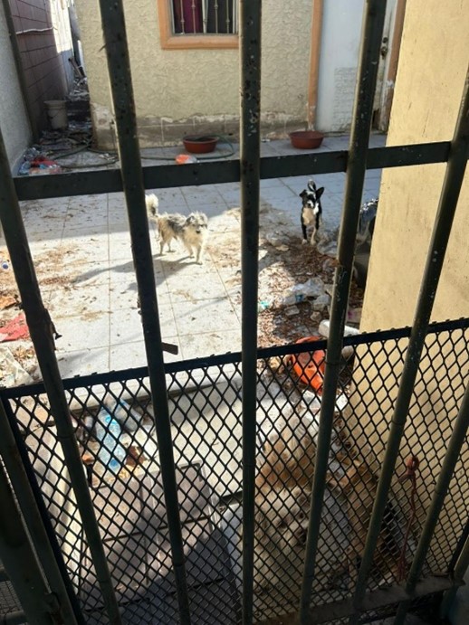 MEXICALI, BAJA CALIFORNIA. - La Fiscalía Regional de Mexicali, en coordinación con la Fiscalía Especializada en Delitos Ambientales y Contra los Animales, realizó un cateo en una vivienda del fraccionamiento Villa Colonial, en donde al parecer mantenían a caninos sin alimento ni agua por varios días.