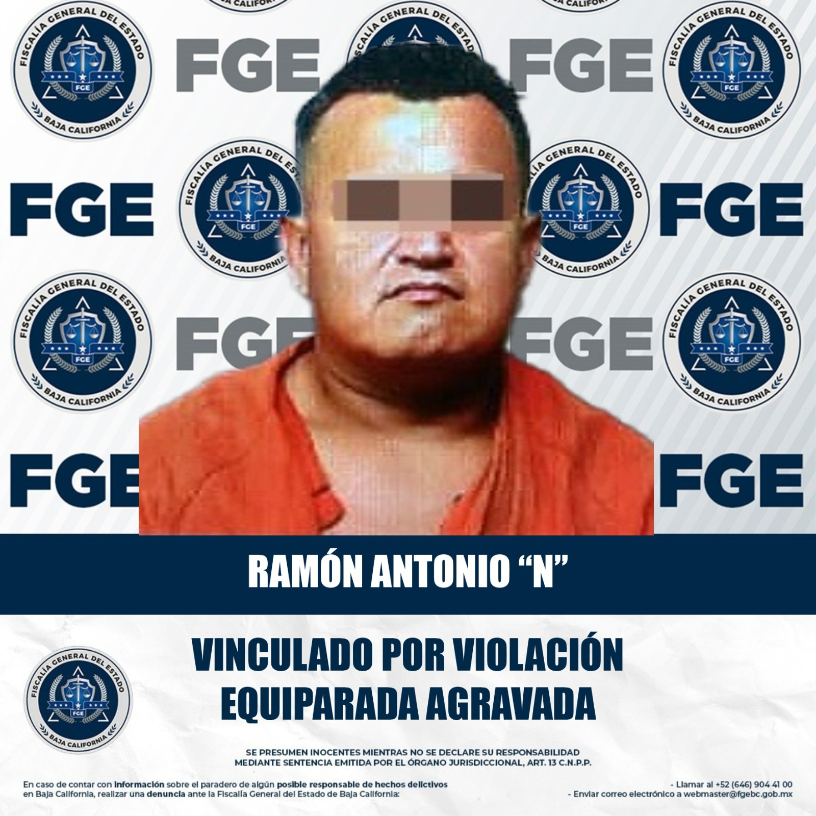 MEXICALI, BAJA CALIFORNIA. - La Fiscalía General del Estado (FGE), a través de la Fiscalía Especializada en Delitos Contra Mujeres por Razón de Género, obtuvo la vinculación a proceso de Ramón Antonio “N”, por su probable responsabilidad en el delito de violación equiparada agravada en perjuicio de una menor.