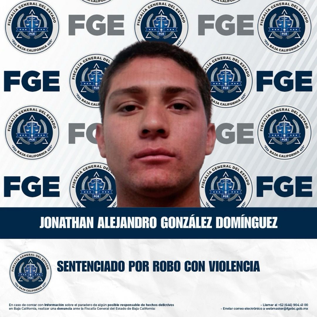 SAN QUINTÍN, BAJA CALIFORNIA. - La Fiscalía Regional de San Quintín obtuvo sentencia condenatoria en contra de Jonathan Alejandro González Domínguez, por su participación en el delito de robo calificado a establecimiento comercial abierto al público ejecutado con violencia, cometido en una gasolinera ubicada en el ejido Nuevo Mexicali.