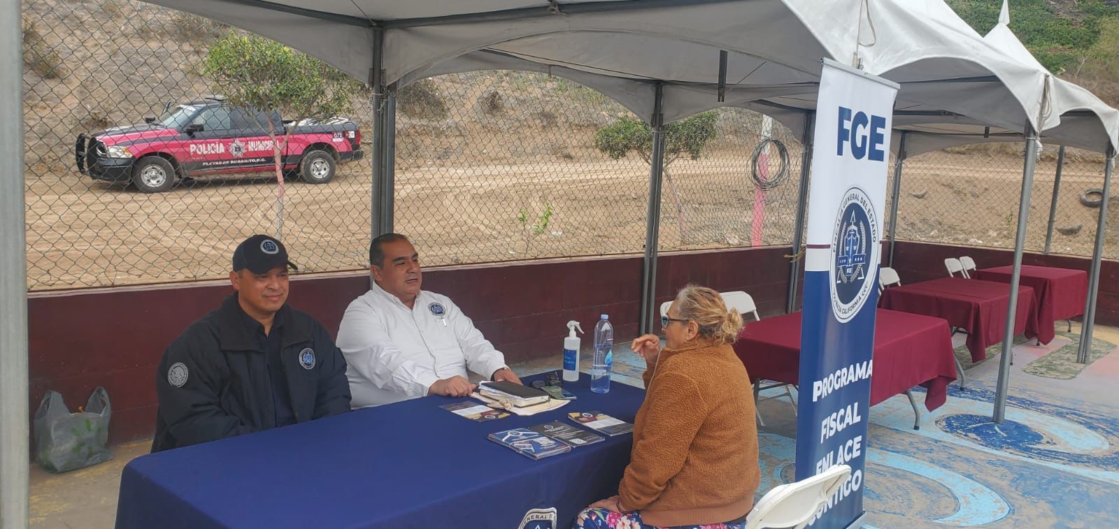 En representación de la FGE estuvieron presentes el Fiscal Regional de Playas de Rosarito, Arturo Mandujano Quezada, y el director del programa “Fiscal Enlace Contigo”, Benito Velázquez, quienes refrendaron el compromiso institucional de mantener cercanía y atención directa con la población.