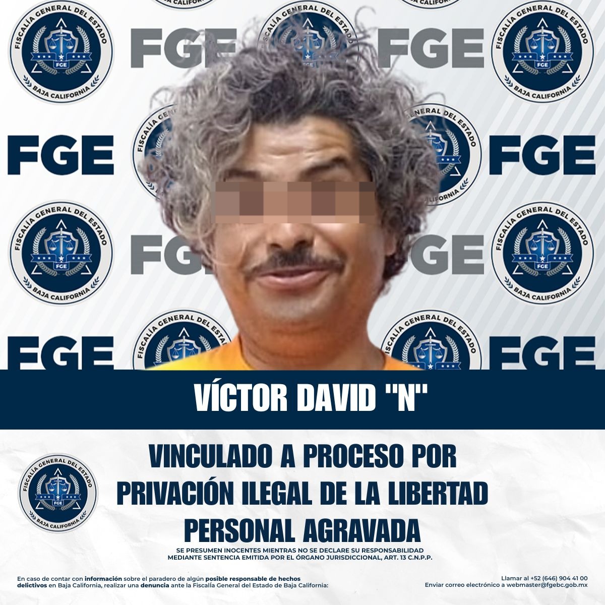 TIJUANA, BAJA CALIFORNIA. - La Unidad de Investigación con Detenido, adscrita a la Fiscalía Regional de Tijuana, obtuvo la vinculación a proceso en contra de Víctor David “N” por el delito de privación ilegal de la libertad personal agravada.