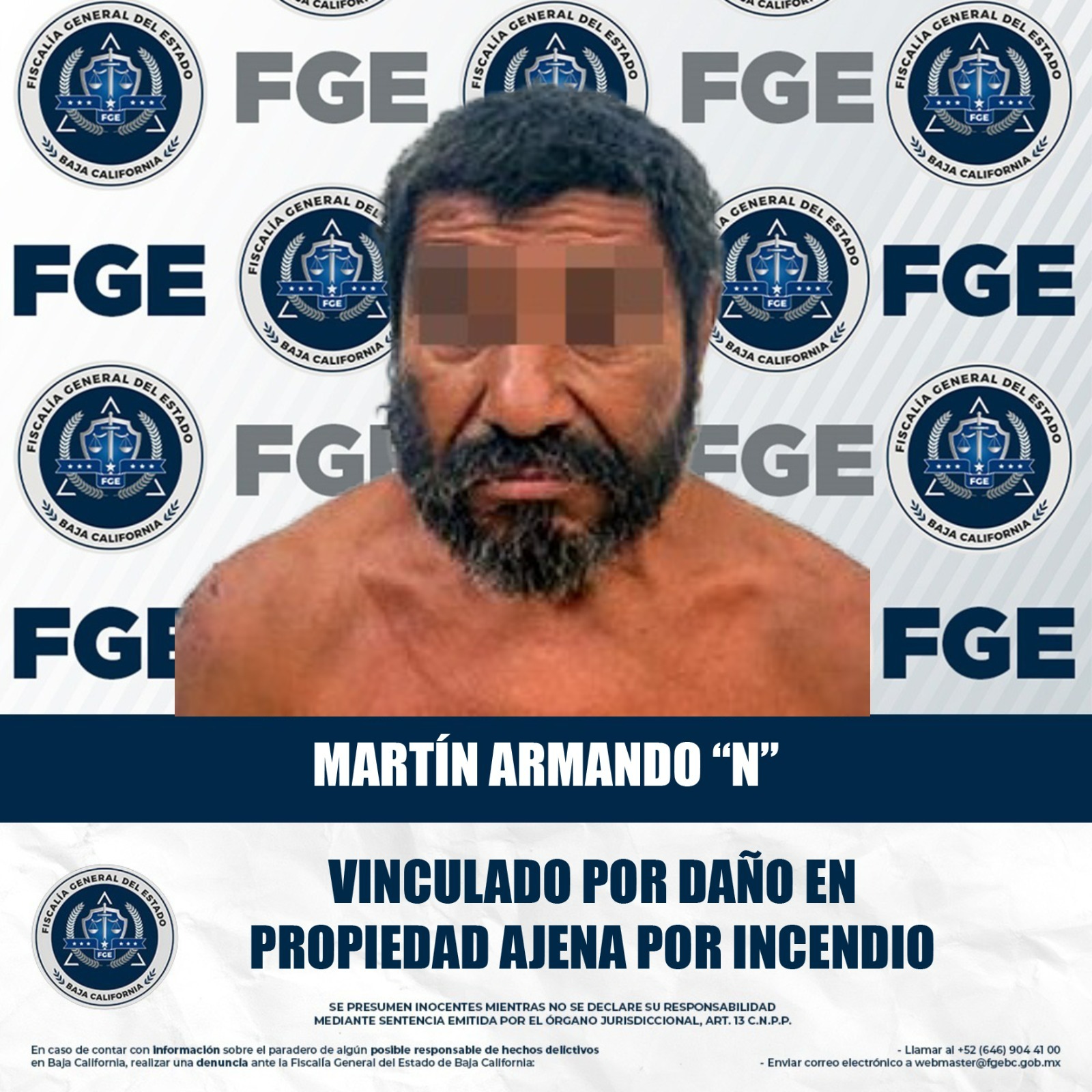 MEXICALI, BAJA CALIFORNIA. - La Fiscalía Regional de Mexicali, a través de la Unidad de Investigación con Detenidos Poniente, obtuvo la vinculación a proceso de un individuo por el delito de daño a propiedad ajena agravado por incendio.
