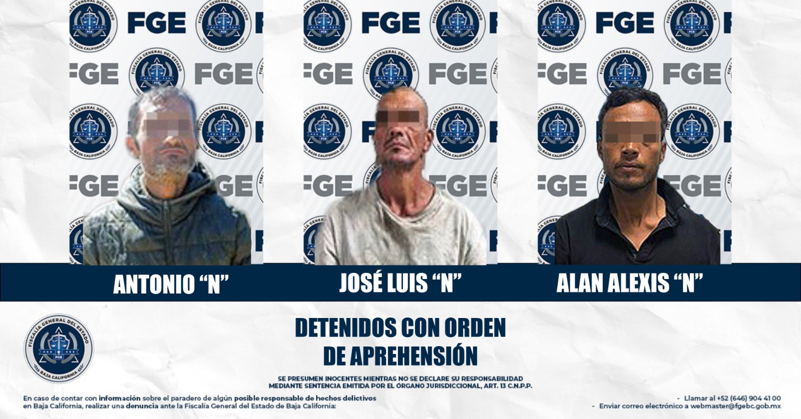 SAN FELIPE, BAJA CALIFORNIA. - Como resultado de un operativo implementado por elementos de la Agencia Estatal de Investigación (AEI) en el puerto de San Felipe, tres personas que eran buscadas por contar con orden de aprehensión por diversos delitos fueron detenidas.