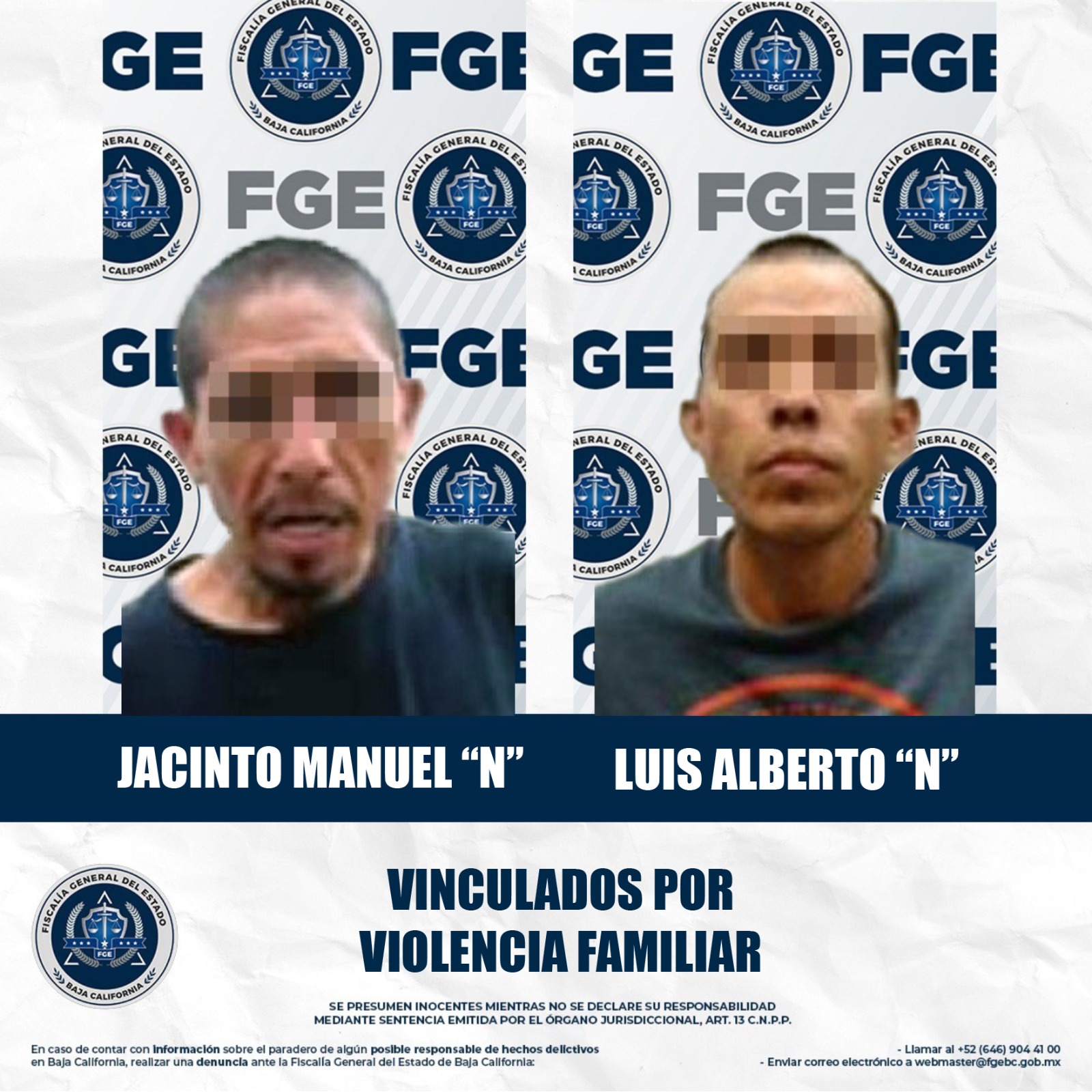 MEXICALI, BAJA CALIFORNIA. - Dos hombres acusados de agredir a familiares fueron vinculados en audiencias por separado, con base en los elementos de prueba presentados por la Fiscalía Regional de Mexicali, a través de la Unidad de Investigación con Detenidos Poniente.