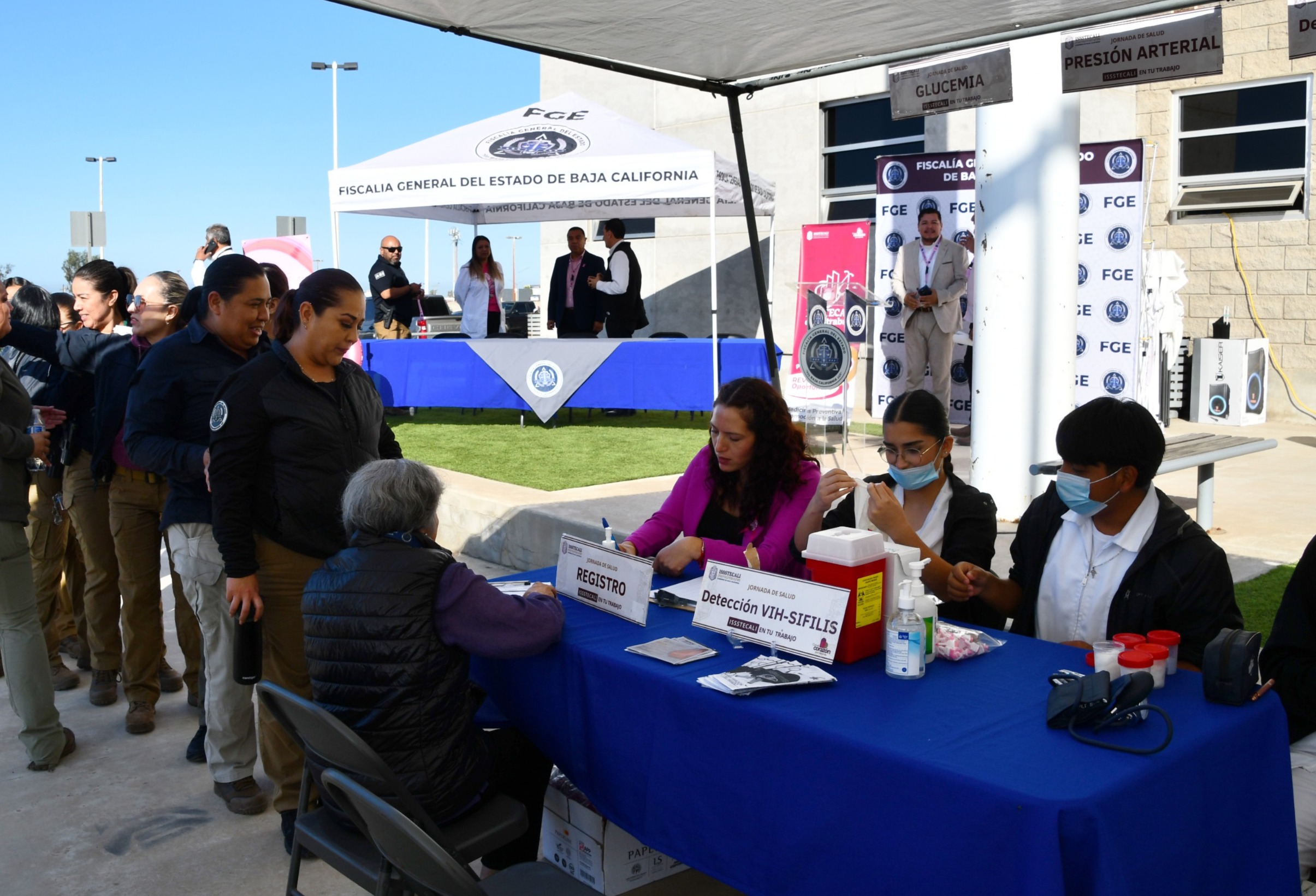 La jornada de salud se llevó a cabo el 23 de octubre del presente año, con la participación del Fiscal Regional de Ensenada, Lic. Miguel Ángel Pérez Rojas; el Comandante de la Agencia Estatal de Investigación (AEI), René Arroyo Ruiz; el Coordinador Administrativo, Lic. David Piza Núñez; el Director de ISSSTECALI en Ensenada, Dr. José Antonio García Rivera; y la Dra. Elizabeth Ortiz Rodríguez, Jefa de Medicina Preventiva.