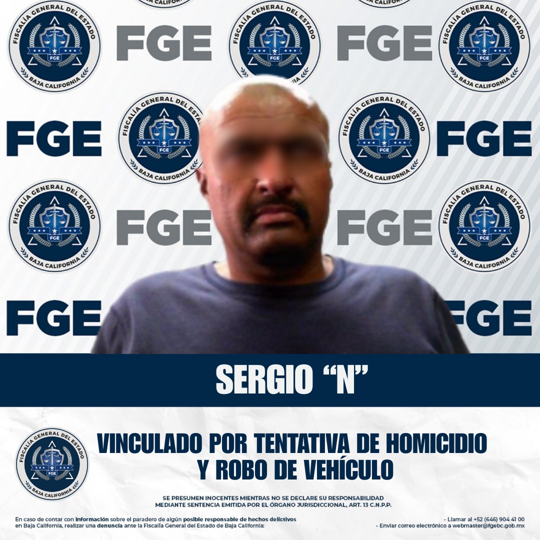 ENSENADA, BAJA CALIFORNIA. - La Fiscalía General del Estado, a través de la Fiscalía Especializada en Delitos Contra la Vida, obtuvo la vinculación a proceso de Sergio “N”, alias “El Teco”, por su presunta participación en los delitos de homicidio calificado en grado de tentativa y robo de vehículo, cometidos en agravio de un hombre, el pasado 13 de febrero de 2025, en el poblado de El Porvenir.