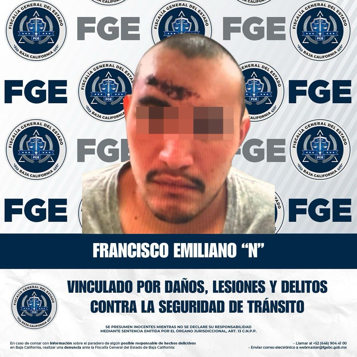 TECATE, BAJA CALIFORNIA. - La Fiscalía Regional de Tecate, a través de la Unidad de Investigación de Delitos con Detenido, obtuvo la vinculación a proceso de Francisco Emiliano "N" por los delitos de daño en propiedad ajena por culpa, lesiones por culpa y delitos contra la seguridad del tránsito de vehículos, en su modalidad de conducir un vehículo de motor bajo el influjo de psicotrópicos, agravado por tratarse de transporte de carga.
