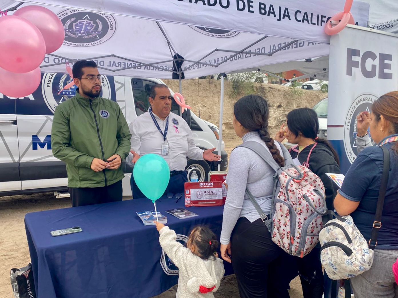 Una de las actividades se realizó en la colonia Terrazas del Valle, en coordinación con el Ayuntamiento de Tijuana, donde la ciudadanía recibió información de utilidad sobre los servicios que brinda la Fiscalía General del Estado y la importancia de la denuncia.