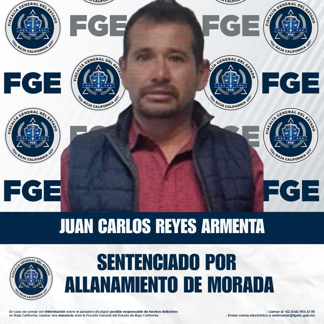 SAN QUINTÍN, BAJA CALIFORNIA. - La Fiscalía Regional de San Quintín obtuvo una sentencia condenatoria contra Juan Carlos Reyes Armenta por el delito de allanamiento de morada, ocurrido el 30 de noviembre de 2022.