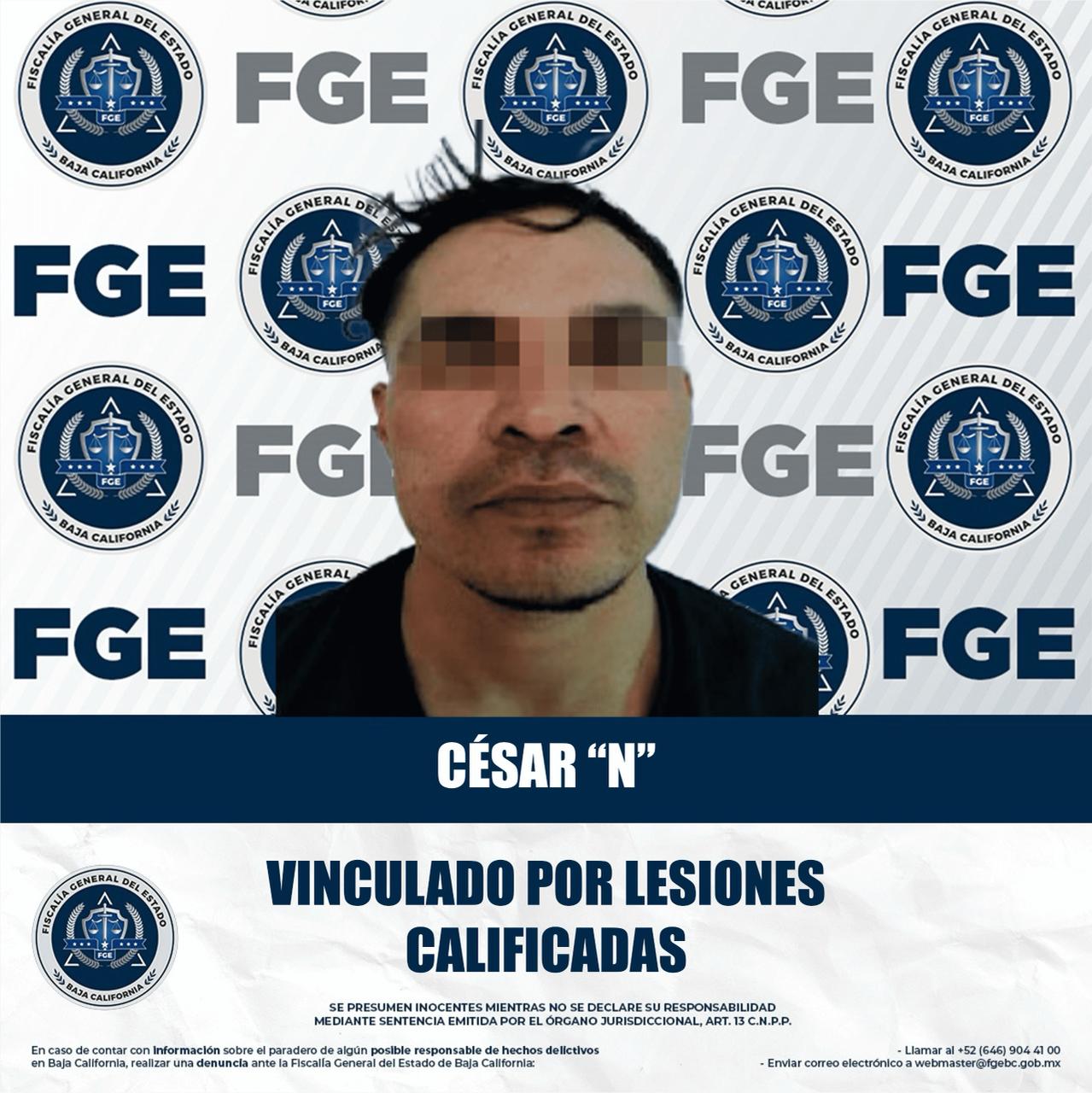 MEXICALI, BAJA CALIFORNIA. - La Fiscalía Regional de Mexicali obtuvo la vinculación a proceso de un hombre acusado del delito de lesiones calificadas, derivado de hechos ocurridos el pasado 20 de octubre en la zona oriente de la ciudad.