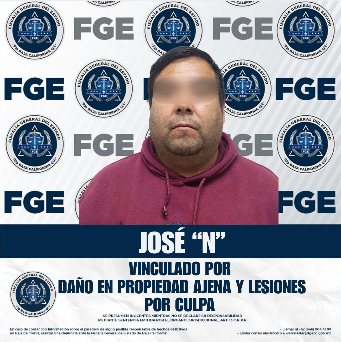 SAN QUINTÍN, BAJA CALIFORNIA. - La Fiscalía Regional de San Quintín logró la vinculación a proceso de José “N” por su presunta responsabilidad en los delitos de daño en propiedad ajena y lesiones por culpa, tras provocar un accidente de tránsito ocurrido el 2 de noviembre de 2025 en la carretera Transpeninsular, km 179+900, en el Ejido Padre Kino.