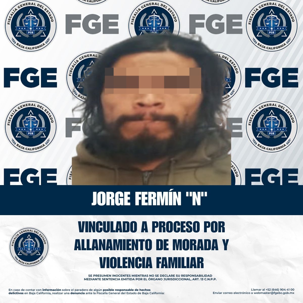 TIJUANA, BAJA CALIFORNIA. - La Unidad de Investigación con Detenido, adscrita a la Fiscalía Regional de Tijuana, obtuvo la vinculación a proceso en contra de Jorge Fermín “N” por el delito de allanamiento de morada y violencia familiar.