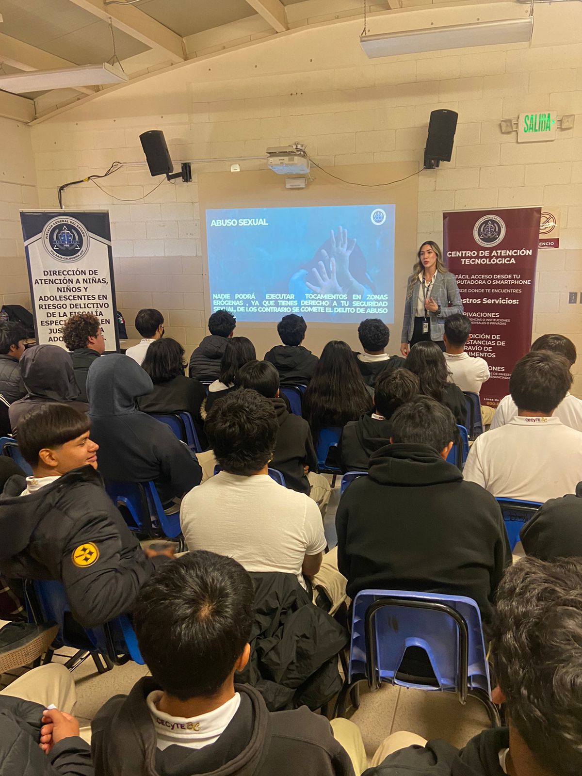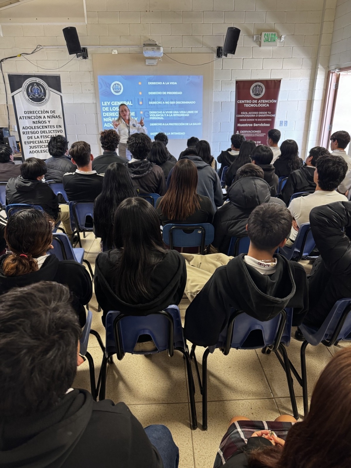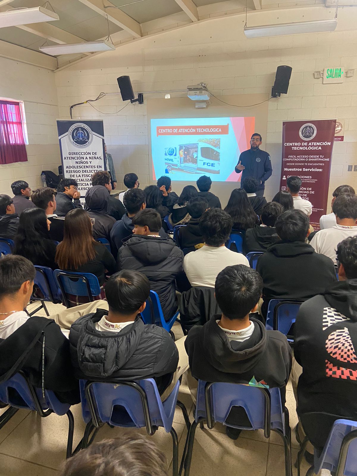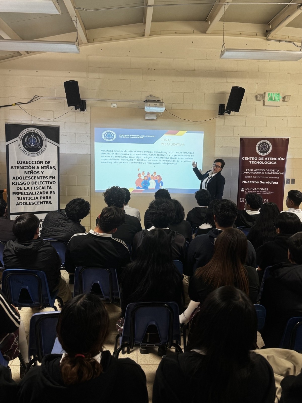 TECATE, BAJA CALIFORNIA. - En cumplimiento con la instrucción de la Dra. Ma. Elena Andrade Ramírez, la Fiscalía General del Estado, a través de la Dirección de Atención a Niñas, Niños y Adolescentes de la Fiscalía Especializada en Justicia para Adolescentes, llevó a cabo el taller “Fiscalía en tu Escuela” en el Centro de Estudios Científicos y Tecnológicos (CECyTE) de Tecate. Este evento, que tuvo lugar en las instalaciones del CECyTE, tuvo como objetivo sensibilizar a la comunidad estudiantil sobre la importancia del respeto, la convivencia sana y pacífica, tanto dentro como fuera del aula, promoviendo, además, la cultura de la denuncia ante situaciones irregulares que pudieran enfrentar.