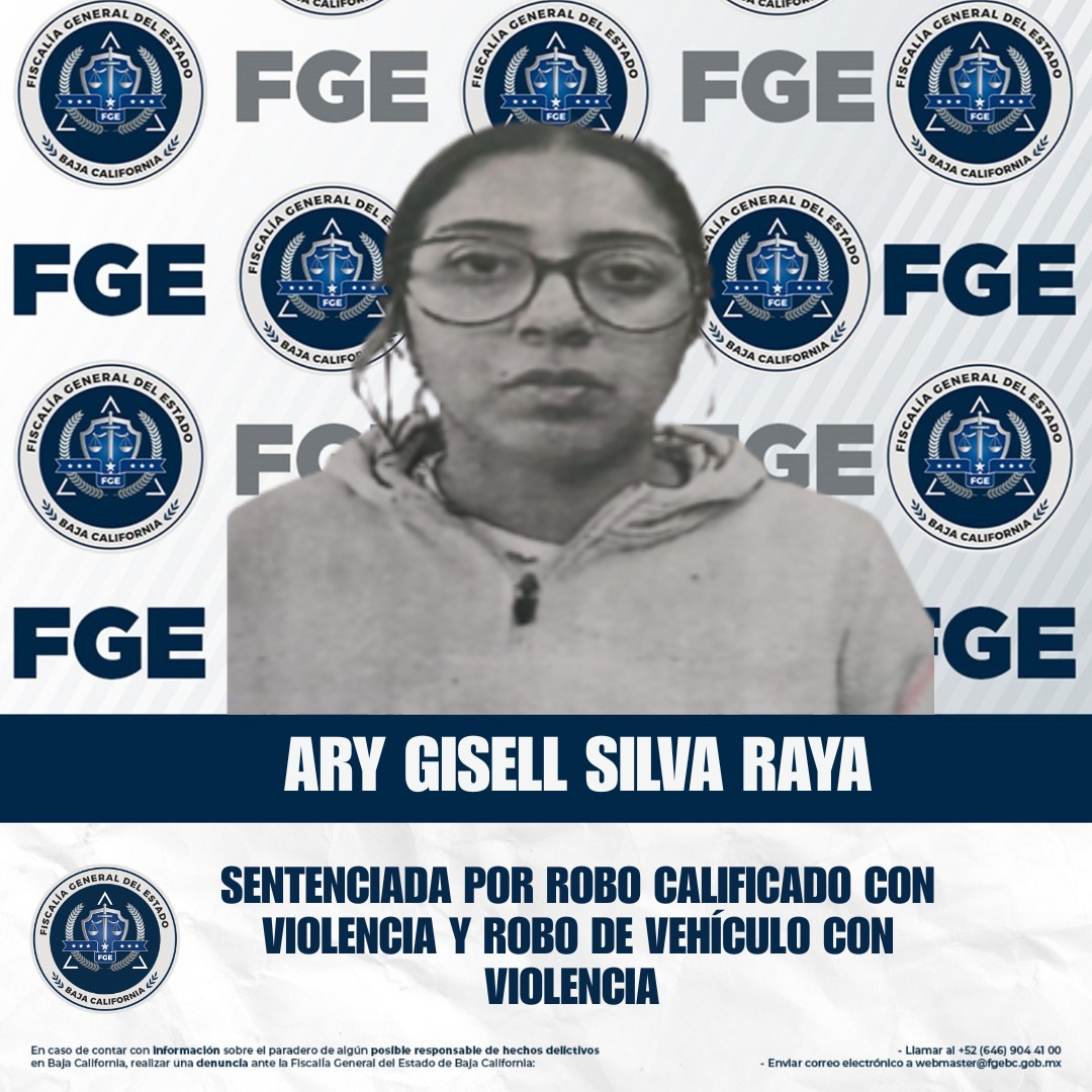 ENSENADA, BAJA CALIFORNIA. - La Fiscalía General del Estado, bajo la conducción de la Fiscal General Dra. Ma. Elena Andrade Ramírez, reafirma el fortalecimiento de sus investigaciones y la obtención de resultados contundentes en casos de alto impacto. En este marco, obtuvo una sentencia condenatoria de 20 años de prisión contra Ary Gisell Silva Raya, por los delitos de robo con violencia y robo de vehículo, relacionados con los hechos que antecedieron al homicidio de tres surfistas extranjeros: un estadounidense y dos hermanos australianos.