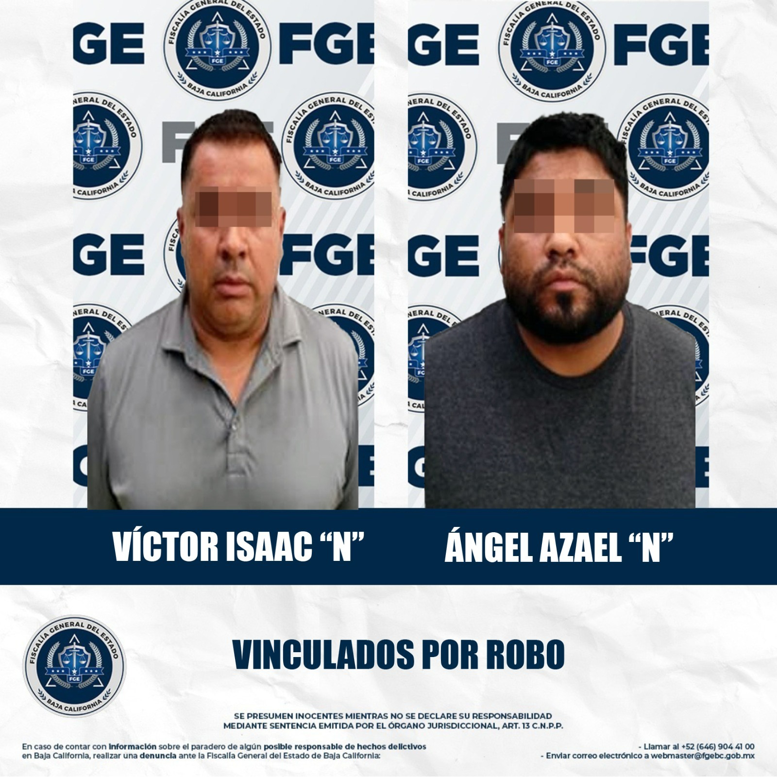 MEXICALI, BAJA CALIFORNIA. - La Fiscalía Regional de Mexicali, a través de la Unidad de Investigación con Detenidos Poniente, obtuvo la vinculación a proceso de Víctor Isaac “N” y Ángel Azael “N”, por su probable participación en el delito de robo calificado cometido por dos o más personas en establecimiento con servicio al público, en grado de tentativa.