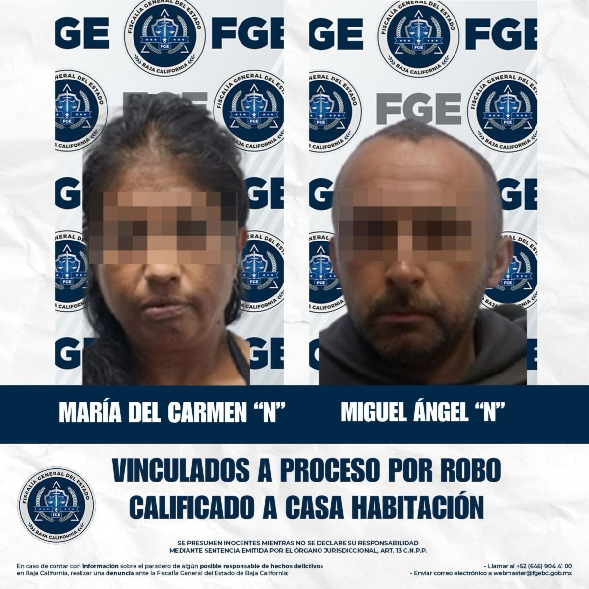 TIJUANA, BAJA CALIFORNIA. - La Fiscalía Regional de Tijuana, a través de la Unidad de Investigación con Detenido, obtuvo dos vinculaciones a proceso en contra de un par de individuos señalados como probables participantes en hechos distintos relacionados con el delito de robo calificado a casa habitación.