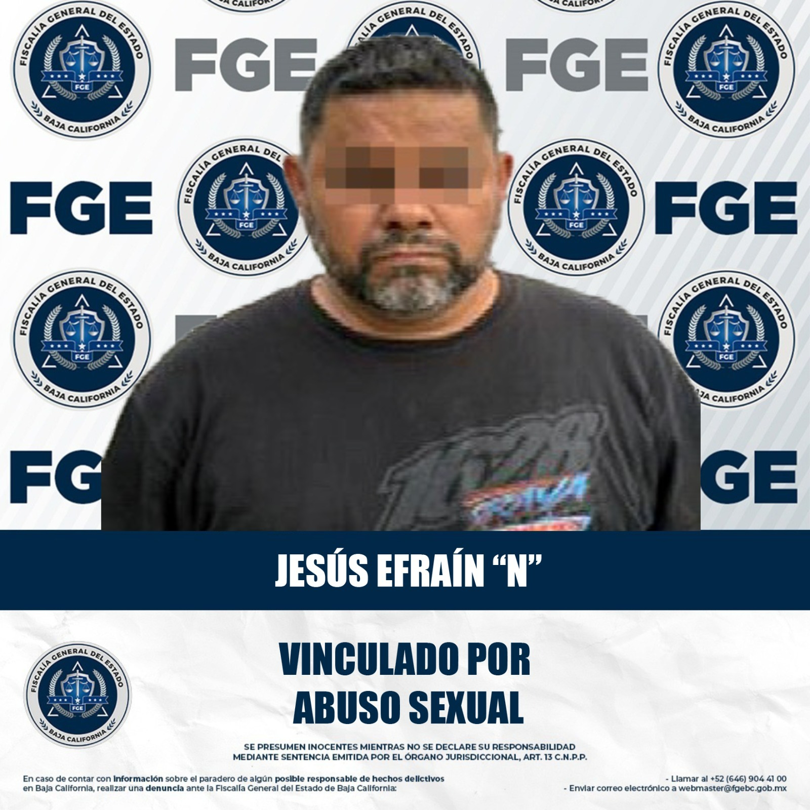 MEXICALI, BAJA CALIFORNIA. - La Fiscalía Regional de Mexicali, a través de la Unidad de Investigación de Delitos con Detenidos Poniente, obtuvo la vinculación a proceso de un individuo por su presunta responsabilidad en el delito de abuso sexual.